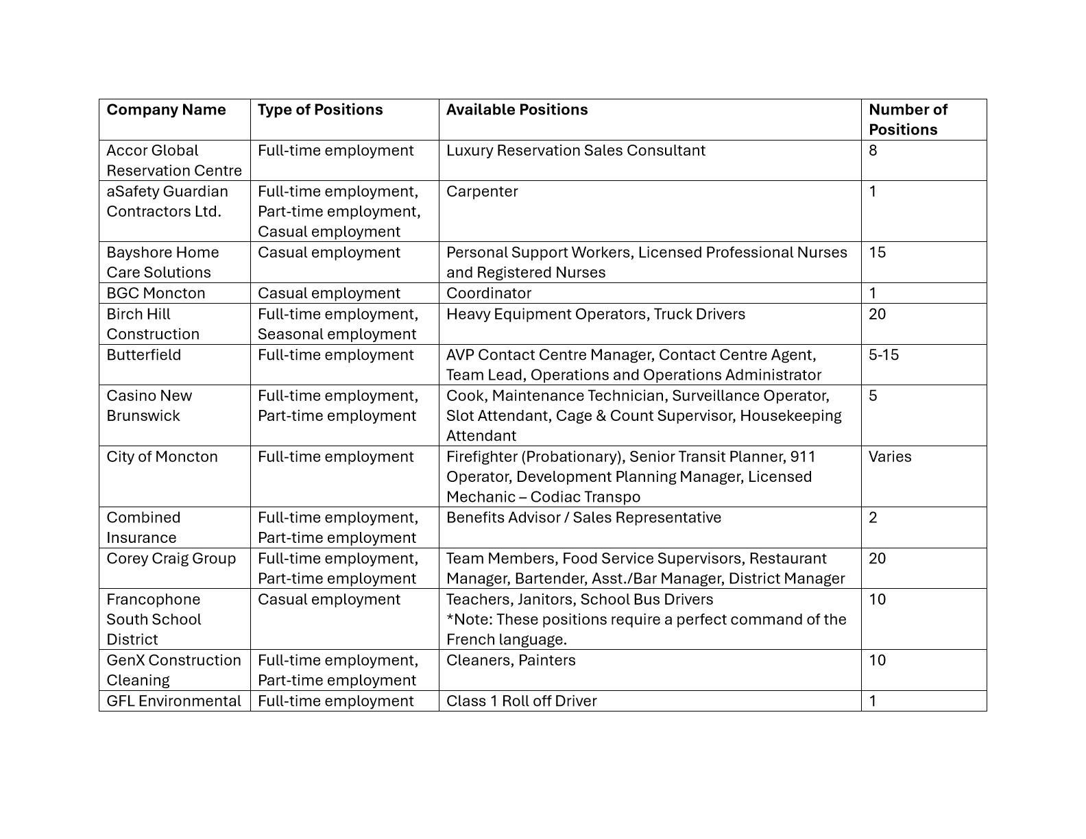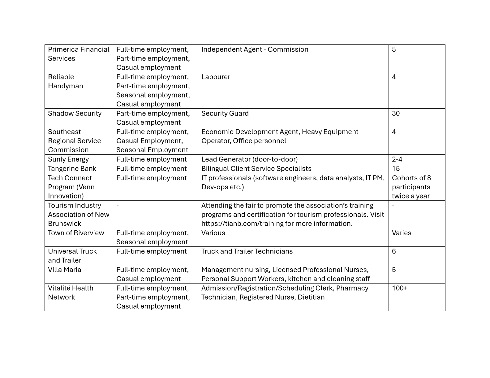 Important note: The information below was provided by the employers attending the event on November 27th, and is subject to change as positions are filled and recruitment needs vary.
